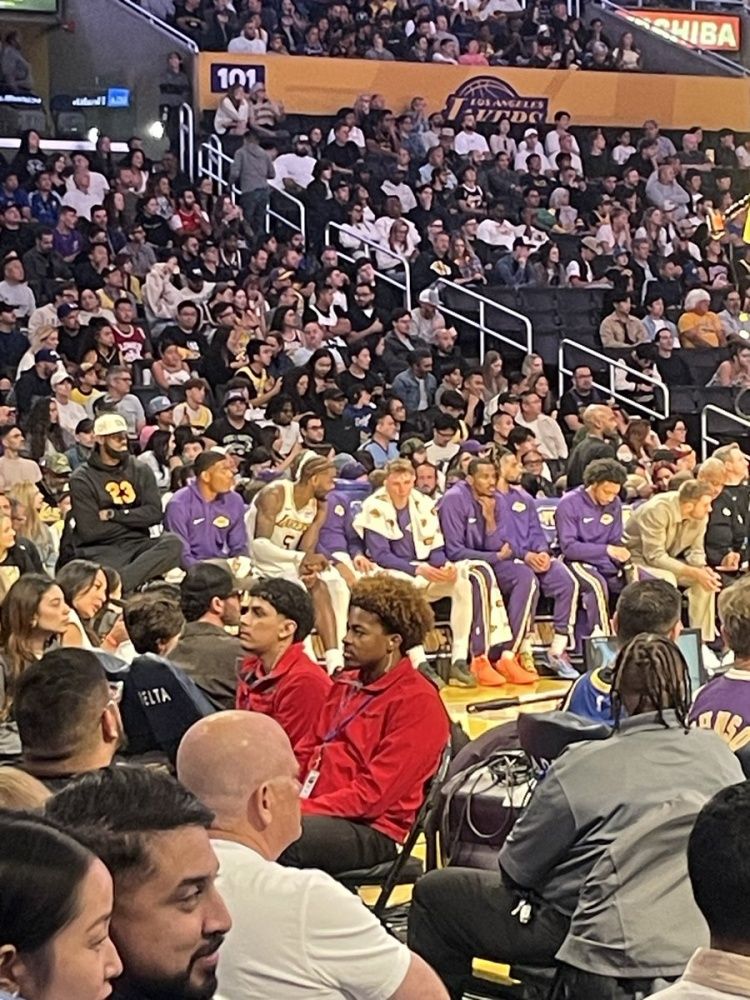 10月13日讯 NBA季前赛,湖人主场迎战勇士,詹姆斯坐在了更高的椅子上,但跷了个二郎腿。