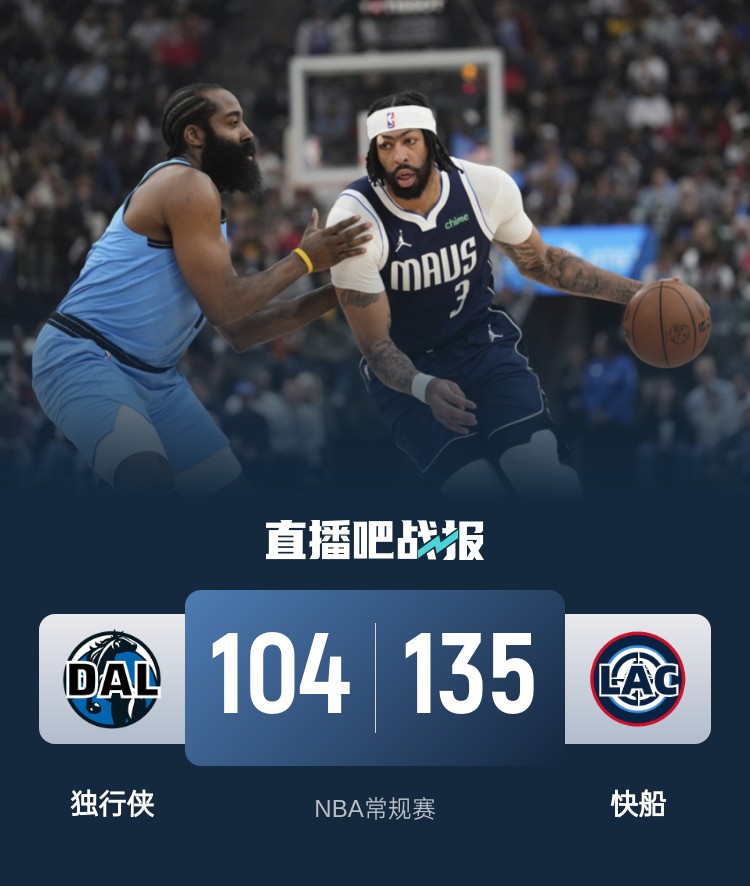4月6日讯 NBA常规赛今日继续开打,快船坐镇主场迎来和独行侠背靠背的第二场对决。两支球队目前都处在争胜关键时刻,快船目前少打一场排在西部第八,独行侠则排在第九,但还没有确保一个附加赛名额。阵容方面莱昂纳德迎来本赛季第一次背靠背作战,上一场休战的浓眉哥也复出登场。