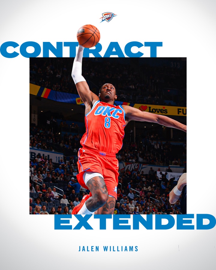 07月14日讯 雷霆官方宣布,球队和杰伦-威廉姆斯签下一份为期数年的提前续约合同。
