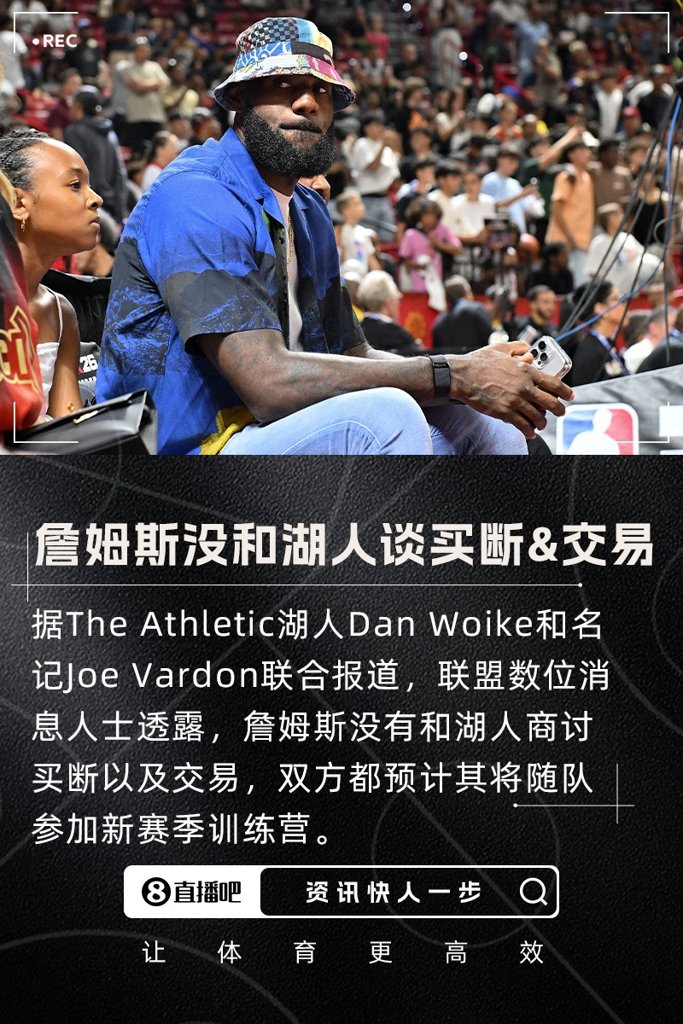 不过据The Athletic湖人Dan Woike和名记Joe Vardon联合报道,联盟数位消息人士透露,詹姆斯没有和湖人商讨买断、交易,也没有迹象表明詹姆斯未来会这么做,双方都预计其将随队参加新赛季训练营。