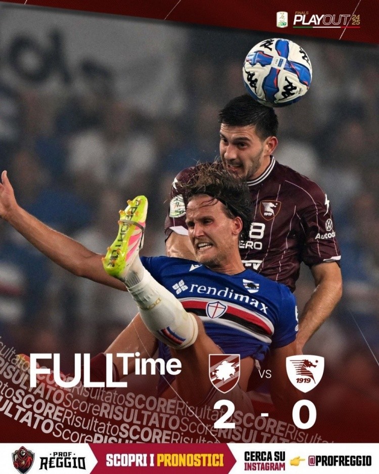 官网公告如下:“萨勒尼塔纳俱乐部宣布,因为球队21名成员包括球员和工作人员遭遇严重的食物中毒,今天的训练取消。此次事件发生在昨天对阵桑普的意乙保级附加赛首回合之后,球队从热那亚返回途中多人身体突然不适,医疗团队出动救护车救治,随后他们被送入医院治疗。”
