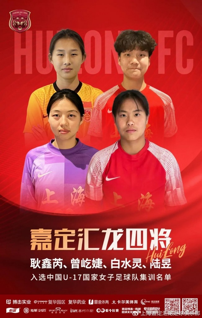 6月20日,中国足球协会下发U17国家女子足球队2025年第三批集训名单通知,由上海嘉定汇龙青训培养的女足球员耿鑫芮、曾屹婕、白水灵、陆昱入选本次集训名单。