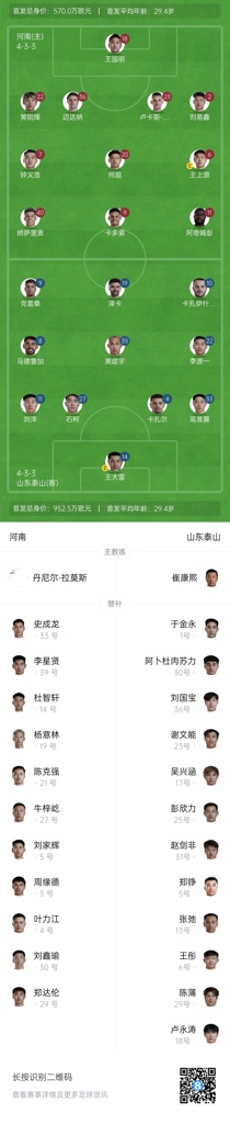 06月30日讯 今晚19点中超第16轮,河南vs山东泰山。赛前首发阵容已经公布。