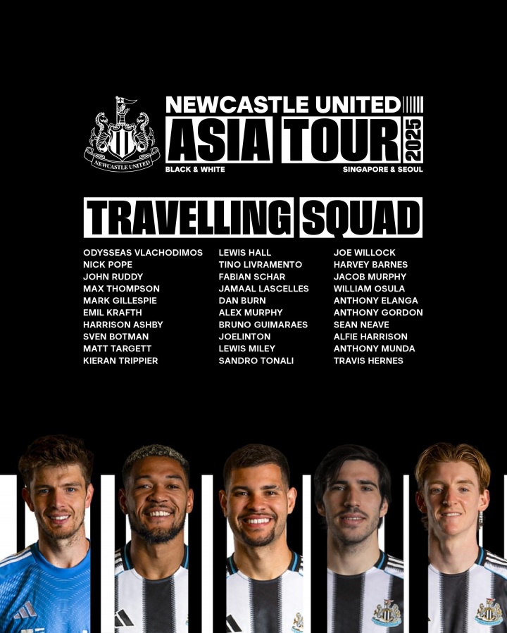 07月24日讯 纽卡官方公布了今夏前往亚洲参加季前赛的名单,新援伊兰加在列,但球队主力前锋伊萨克却不在名单中。